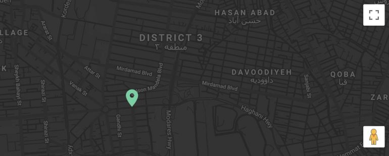آدرس دفتر مرکزی : تهران - خیابان آفریقا ، کوچه کمان ، پلاک 10 ، طبقه دوم